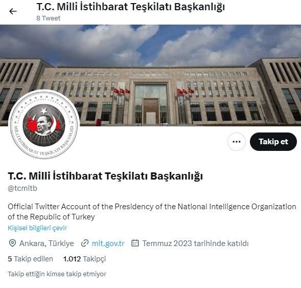 Resmi olarak "T.C. Milli İstihbarat Teşkilatı Başkanlığı" isminin kullanıldığı hesap, Twitter'da 7 Temmuz tarihinde yer almaya başladı. Hesabın açıklama kısmında ise, "Türkiye Cumhuriyeti Milli İstihbarat Teşkilatı Başkanlığı Resmi Twitter Hesabı" ifadesi yer alıyor. Hesap, Cumhurbaşkanı Recep Tayyip Erdoğan, Cumhurbaşkanlığı İletişim Başkanlığı, Dışişleri Bakanı Hakan Fidan, MİT Başkanı İbrahim Kalın ve Cumhurbaşkanlığı hesaplarını takip ediyor.