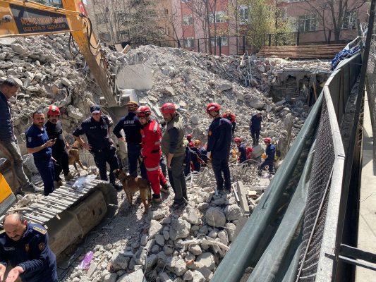 Arama çalışmalarına arama kurtarma köpekleri de katıldı. Şu ana kadar yapılan çalışmalarda enkaz altında kalan işçiye ulaşılamadı. İşçiyi arama çalışmaları sürüyor. (DHA)