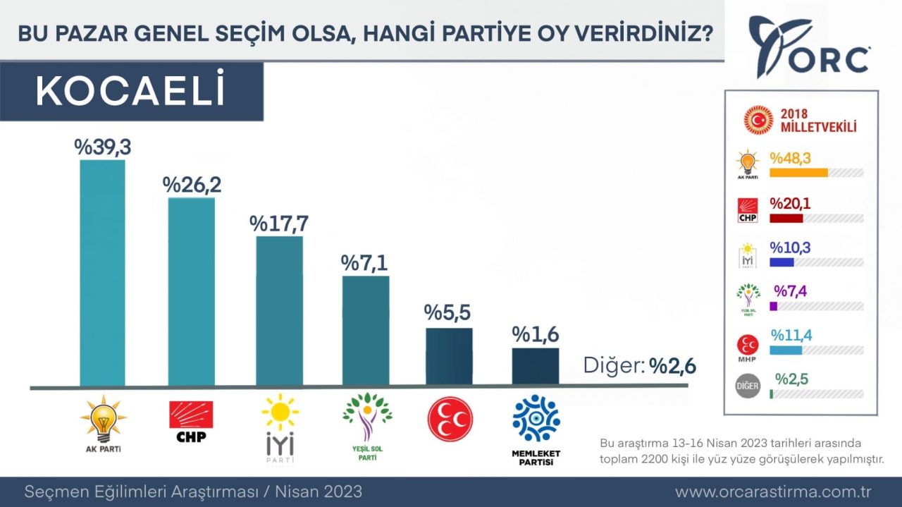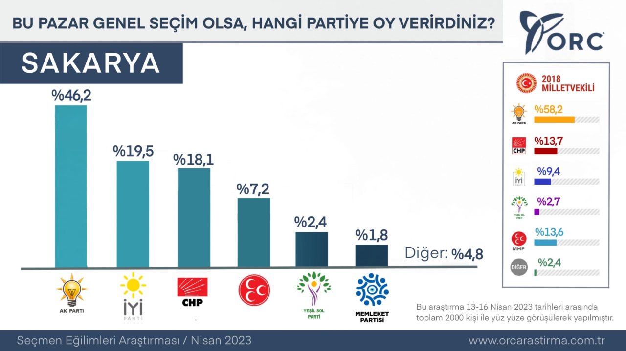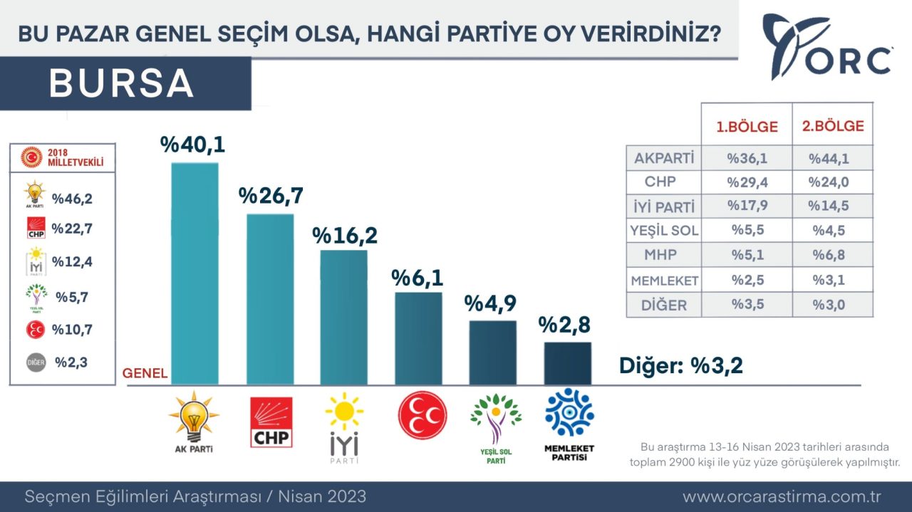 ORC Araştırma, Bursa, İstanbul, Kocaeli ve Sakarya’da gerçekleştirdiği son seçim anketinin sonuçlarını paylaştı.