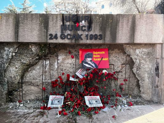 “Bugün 24 Ocak, 31 yıl önce bu sokakta patlayan bir bomba Türkiye’de tahrip gücüyle Cumhuriyet’in değerlerine saldırdı. Cumhuriyet’i Cumhuriyet yapan, bizi biz yapan değerlere saldırdı. O değerlerin en cesur savunucusunun bedenini paramparça etti. Ancak o beden, bu ülkenin sınırları içindeki her yere savurulurken; her yere kendi direncini, mücadele azmini, aydınlanma ışığını taşıdı. Uğur Mumcu, 31 yıldır yanan bir mumdur; karanlığa karşı yanan bir mumdur. Bu katliamın, bu cinayetin gerçek failleri ortaya çıkarılmadı. Aslında bu cinayet, işlenmeden önce failleri ortada olan bir cinayettir. Uğur Mumcu, Rabıta kitabında kimi yazıyorsa, failler onlardır. Papa-Mafya-Ağca kitabında devlet-mafya ilişkilerini ve yurtdışı bağlantılarını nasıl yazıyorsa, fail onlardır. Uğur Mumcu’nun mücadele ettiği; devlet içine sızan tarikatlar, failin ta kendisidir.