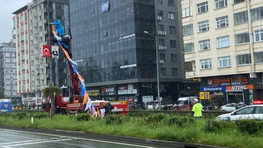 AK Parti'nin Ankara ve Rize mitingi öncesi CHP'nin ve İYİ Parti'nin afişleri söküldü.
