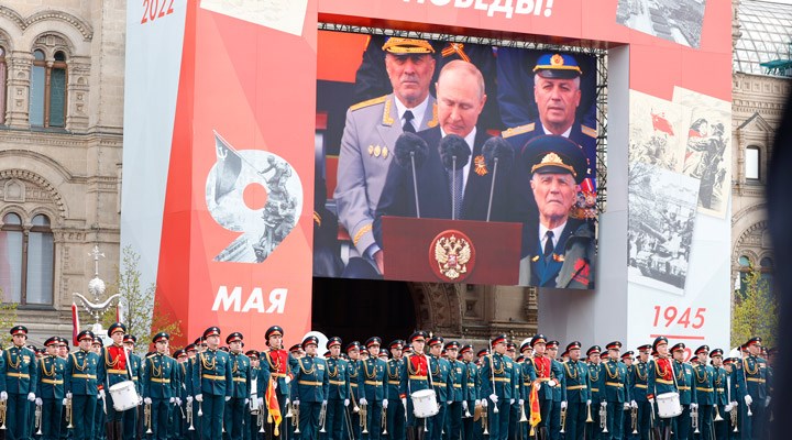 Rusya Devlet Başkanı Putin, Kızıl Meydan’da yaptığı Zafer Günü konuşmasında Batı ülkelerinin beklentilerinin aksine Ukrayna’ya karşı topyekûn seferberlik ilan etmedi ancak bu ülkeleri Rusya’yı işgal etme hazırlığı yapmakla suçladı ve yeni bir dünya savaşı tehlikesinden söz etti.
