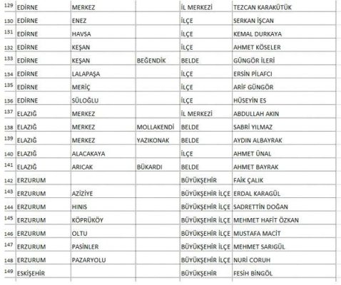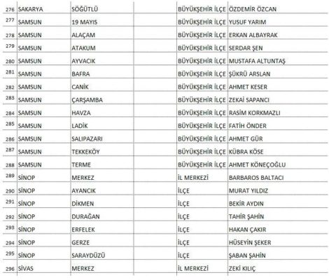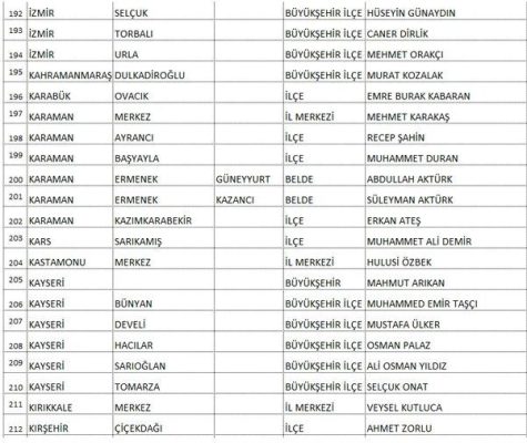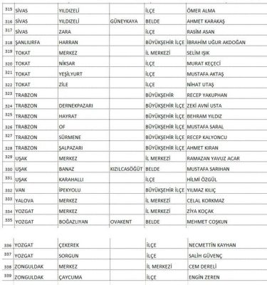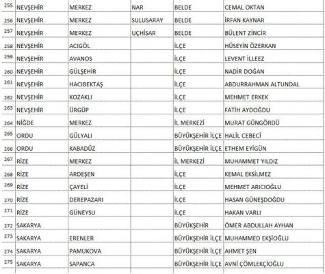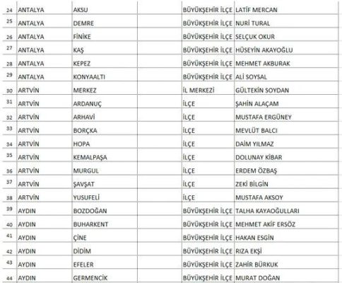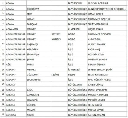 Karamollaoğlu, toplantının ardından adaylarını açıkladı. Açıklanan adayların tamamı şöyle