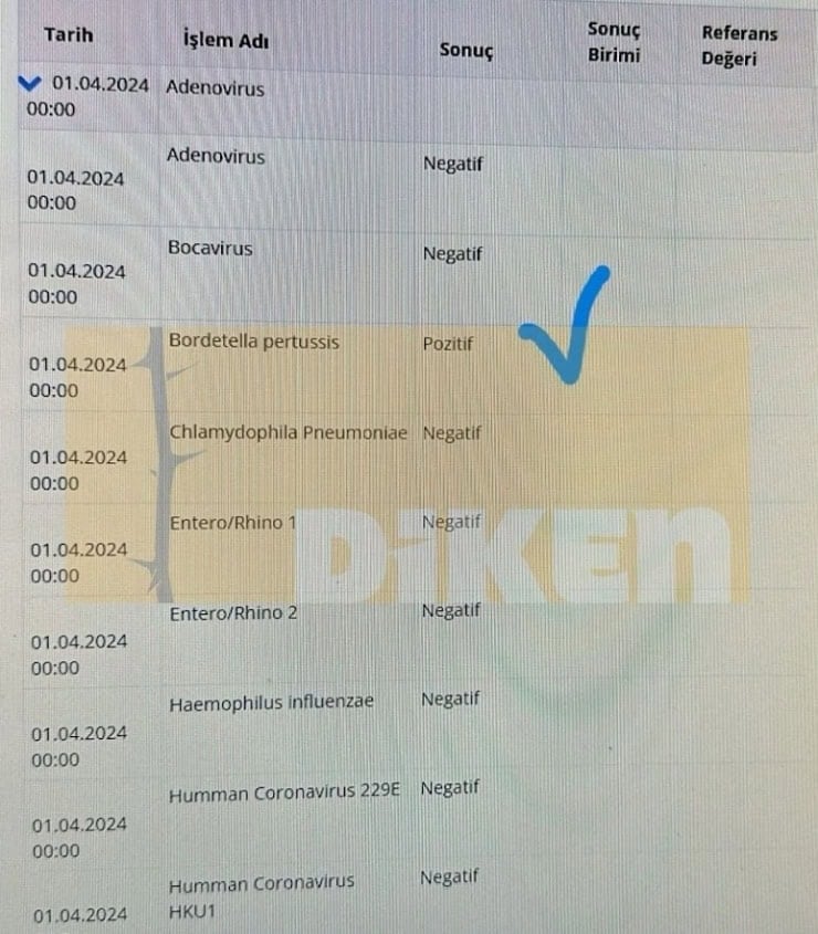 Diken’de yer alan Mesude Demir'in haberine göre, Sağlık Bakanlığı testi pozitif çıkan ve boğmaca tanısı konulan hastaları gizliyor. Belgeler, hastalıkların resmi kayıtlara geçmemesi için 'sihirli bir el'in devreye girdiğini gösteriyor.