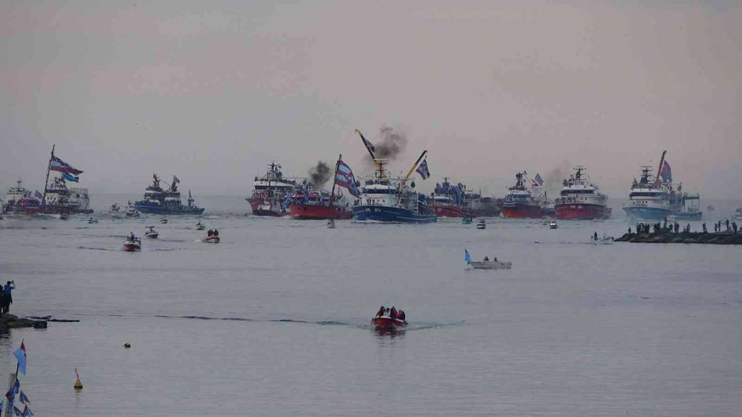 Şampiyon futbolcular kendi seçtikleri parçalar eşliğinde Zafer Yolu'ndan geçerek sahneye çıktı. Bordo-mavili takımın yabancı oyuncuları sahneye çıkarken üstlerinde ülkelerinin bayrakları vardı.