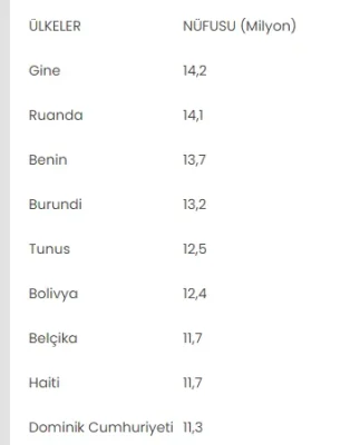 Portekiz ve Macaristan 10,2 milyon, Tunus 12,5 milyon, Belçika 11,7 milyon nüfus ile İstanbul’un gerisinde kalan ülkelerden bazıları oldu.