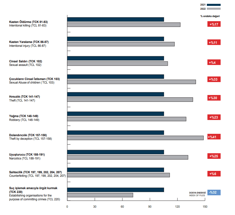 Eski İçişleri Bakanı Süleyman Soylu’nun suç örgütleriyle mücadelesindeki karnesine Adalet Bakanlığı’nın 2022 yılı istatistikleri üzerinden bakıldığında 2022 yılında ele alınan suçlarla ilgili açılan davaların hepsinde artış olurken “suç işlemek amacıyla örgüt kurma” suçuyla açılan davalar, 2021 yılına göre yüzde 32 düştü.