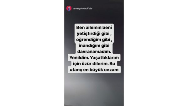 Sema Aydemir, Survivor'dan diskalifiye olmasının ardından 1.9 milyon takipçisi bulunan sosyal medya hesabının hikayeler bölümünden ilk paylaşımını yaptı. Ünlü isim, mesajında şu ifadelere yer verdi: