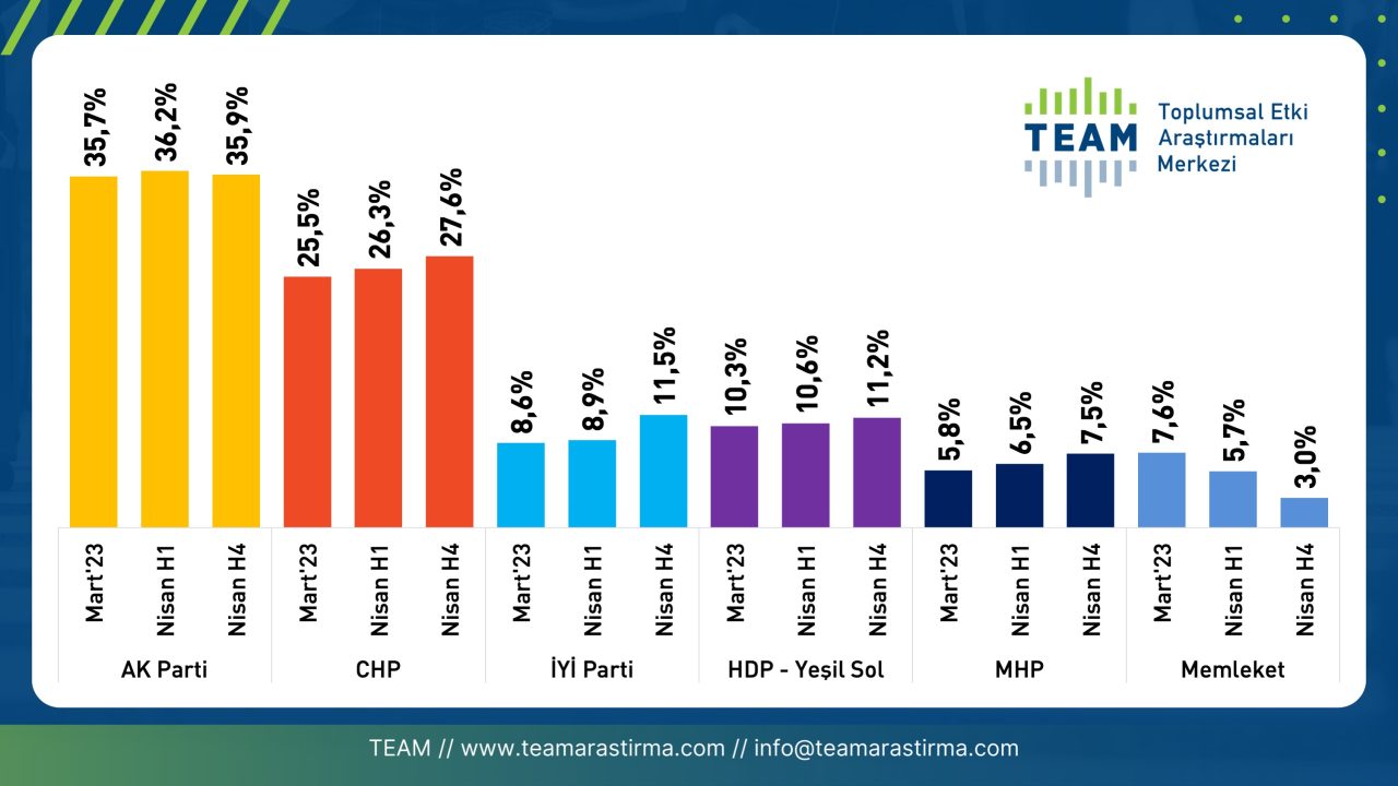 "Sonuçları Mart ortası ve Nisan başında yaptığımız araştırmalar ile karşılaştırmalı olarak aktaracağız" bilgisini paylaşan TEAM Araştırma'nın anket sonuçları ve sonuçlara dair yorumları şöyle: