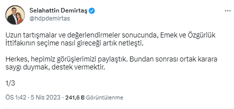 Uzun tartışmalar ve değerlendirmeler sonucunda, Emek ve Özgürlük İttifakının seçime nasıl gireceği artık netleşti. Herkes, hepimiz görüşlerimizi paylaştık. Bundan sonrası ortak karara saygı duymak, destek vermektir.
