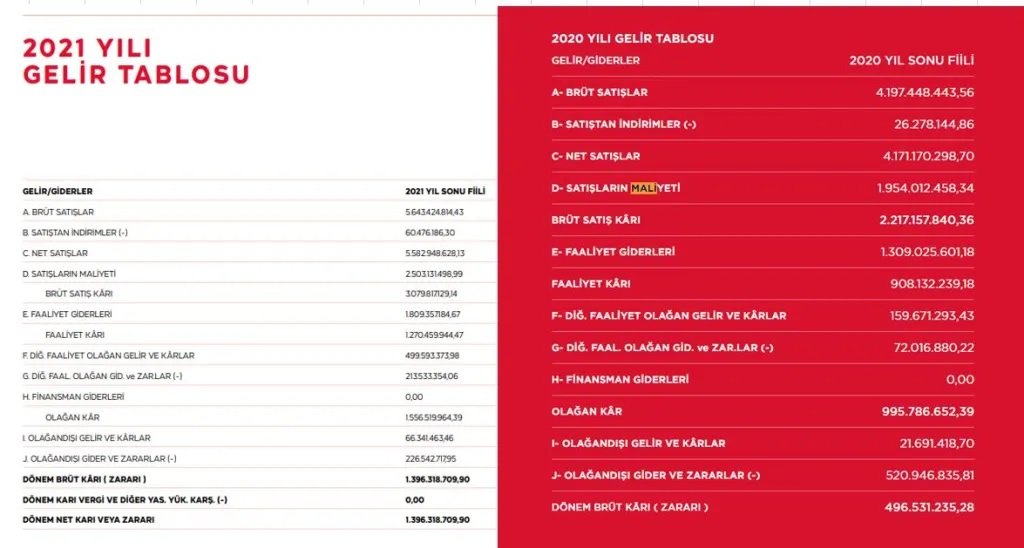 Bununla birlikte 2021 yılında 1,4 milyar TL net kâr elde ettiğini iddia eden kurumun vergi ödemediği görüldü. Kurumun 2021 yılı için kamuoyu ile paylaştığı gelir tablosunda “Dönem Kârı Vergi ve Diğer Yas. Yük. Karşılığı(-)” satırının karşısında “0” (sıfır) rakamının yazdığı görüldü.