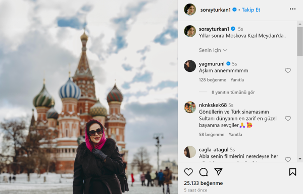 Şoray, Kızıl Meydan'dan paylaşım yaptı. Şoray paylaşımına "Yıllar sonra Moskova Kızıl Meydan’da..." notunu düştü.