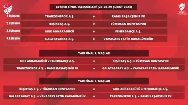 Ziraat Türkiye Kupası'nda çeyrek final eşleşmeleri belli oldu.