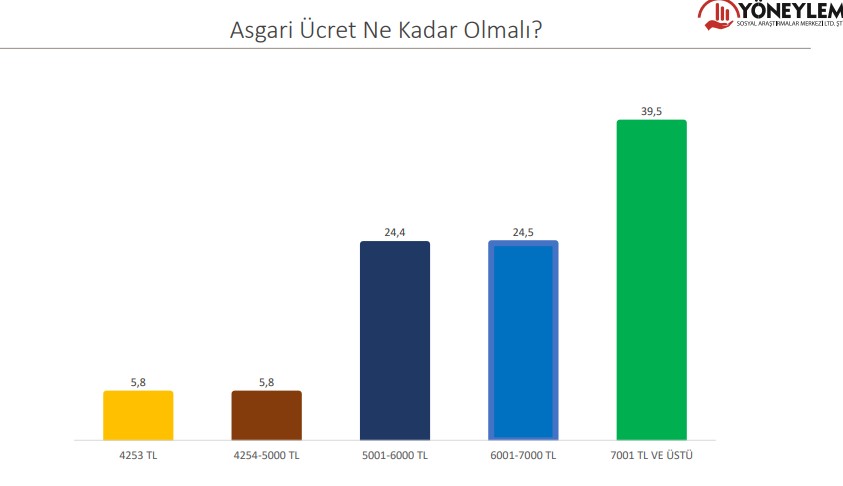 Katılımcılara ‘Asgari ücret ne kadar olmalı?’ diye sorulduğunda çoğunluk 7000 lira ve üzerini işaret ediyor.