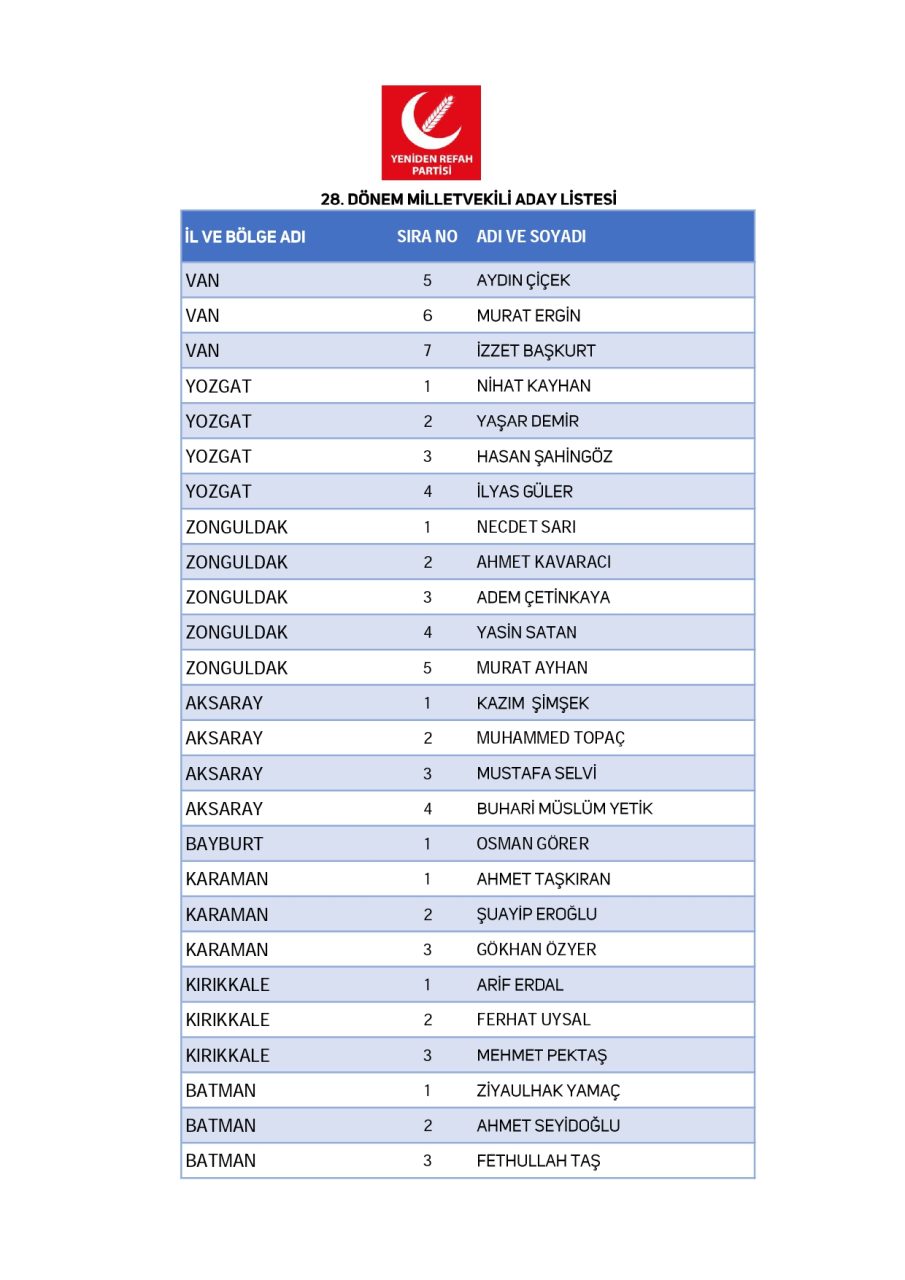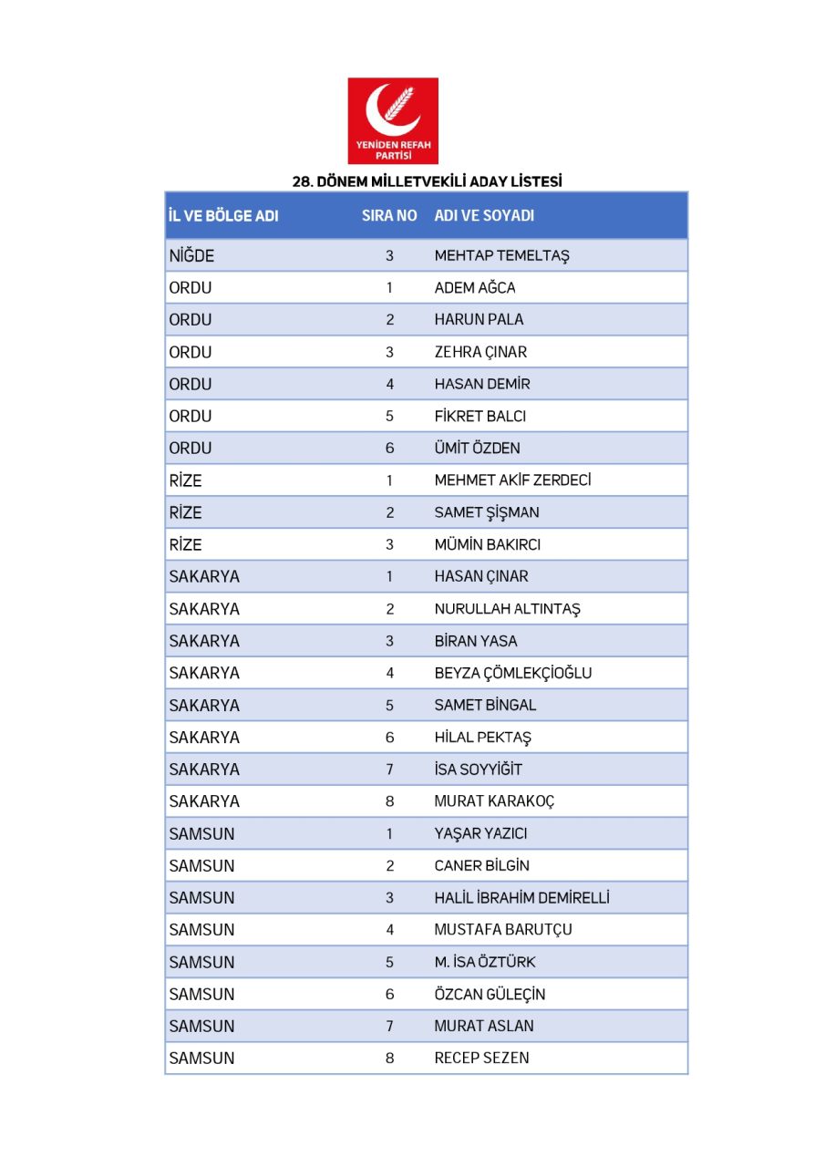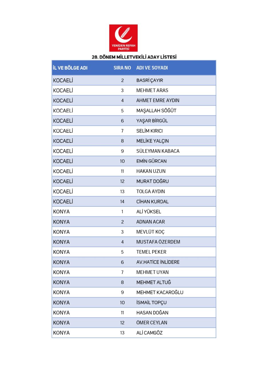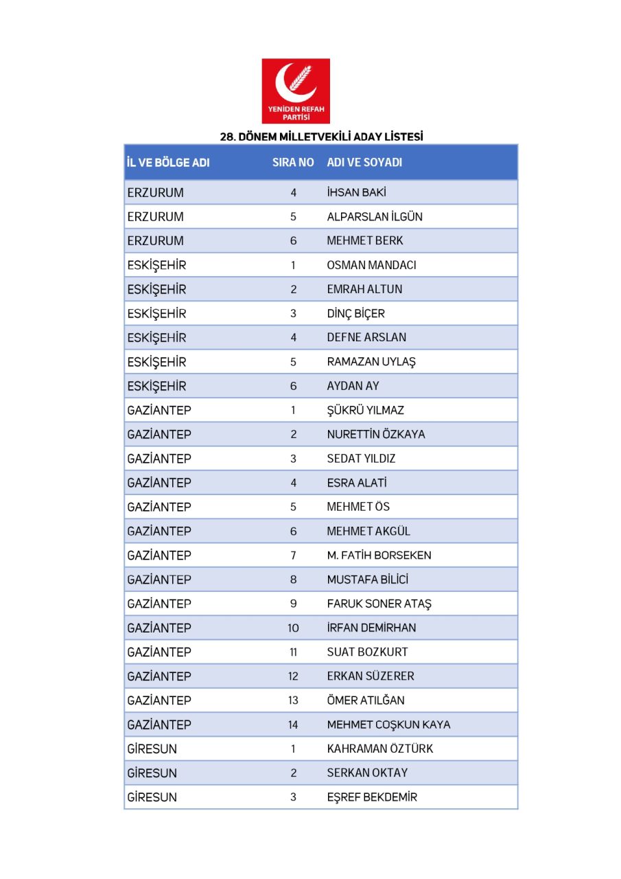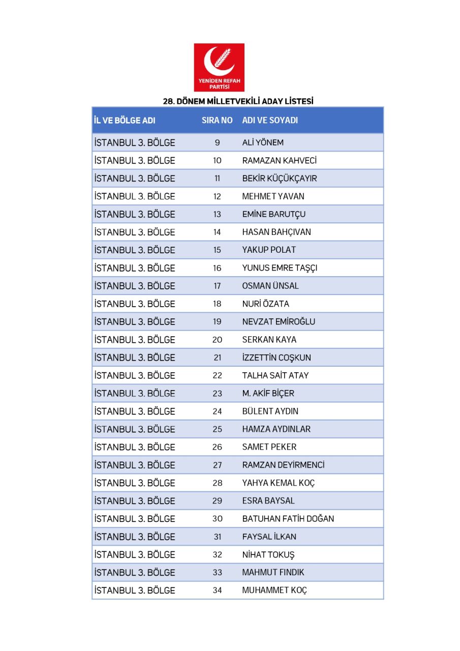İşte Yeniden Refah Partisi'nin milletvekili adayları:
