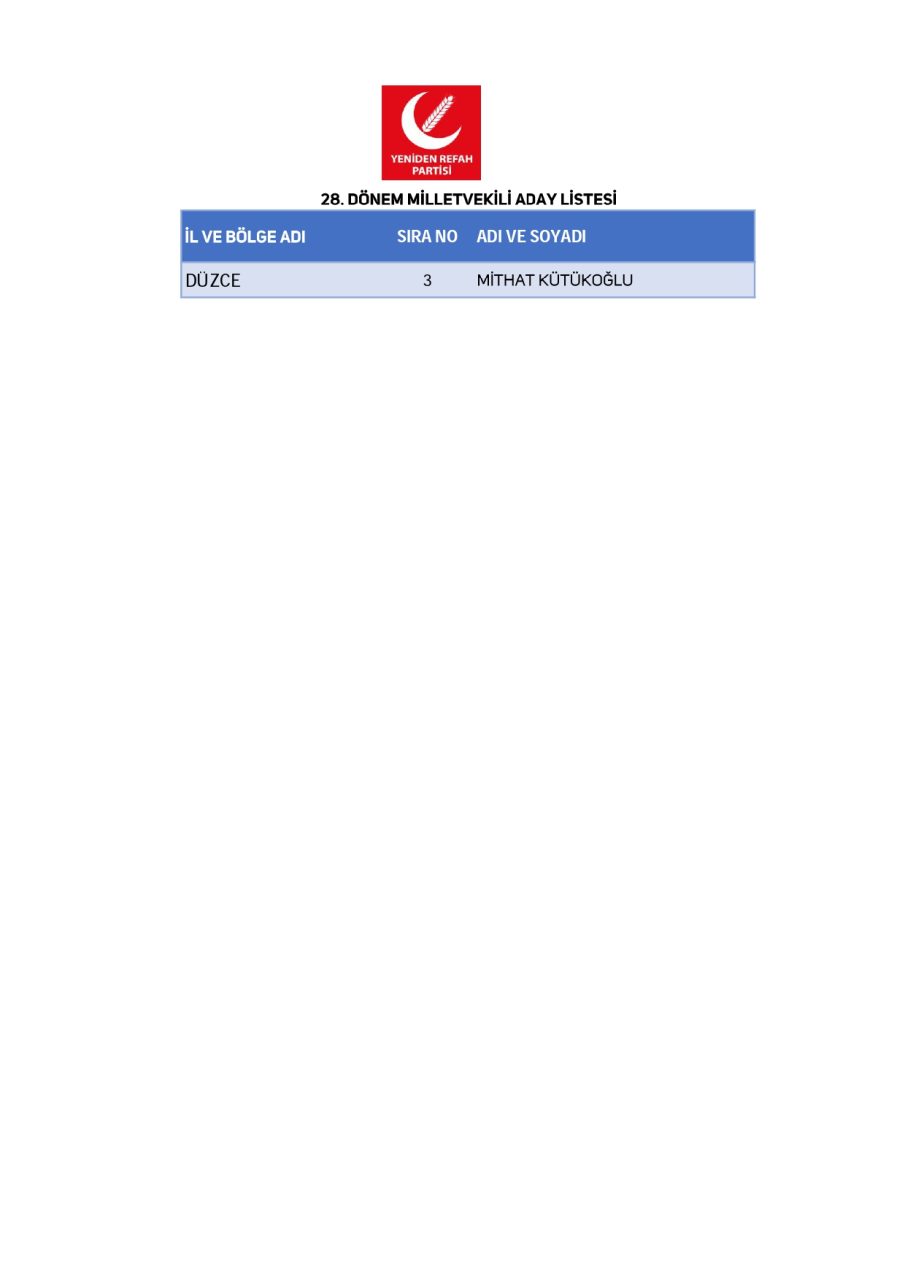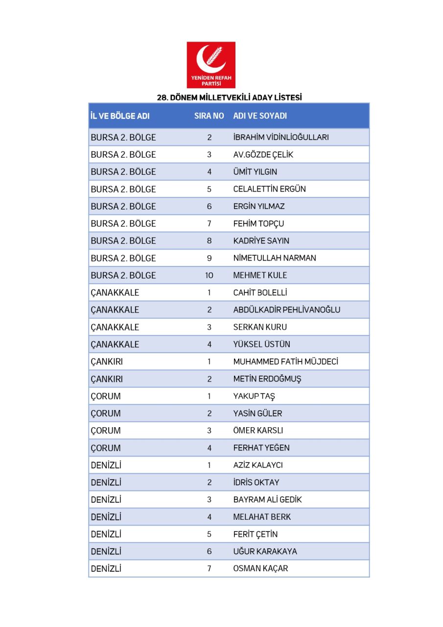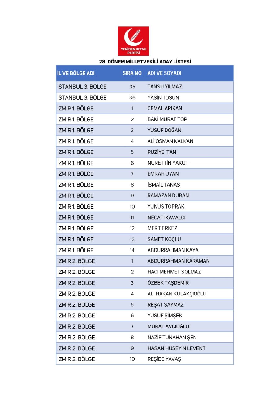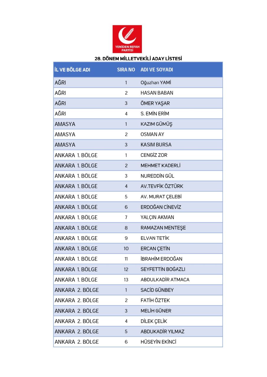 İşte Yeniden Refah Partisi'nin milletvekili adayları: