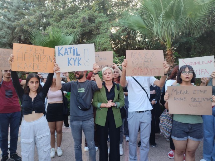 Mersin'de de üniversite öğrencileri Çiftlikköy yerleşkesi önünde toplandı. 'Ölmeye değil, okumaya geldik' pankartı açan öğrenciler, 'Susma sustukça sıra sana gelecek', 'Katil KYK' sloganları attı.