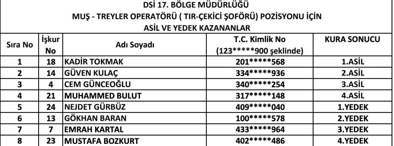 Tokmak, iki başvurusunda da atanan isimler arasında yer aldı. Karayolları Genel Müdürlüğü bünyesinde Bitlis Şube Şefliği’nde Kar Temizleme Makinesi Operatörü olarak seçilen Tokmak, Devlet Su İşleri Genel Müdürlüğü 17. Bölge Müdürlüğü bünyesinde de iş makinası operatörlüğünün aksine TIR-Çekici şoförü olarak asıl listede çıktı.