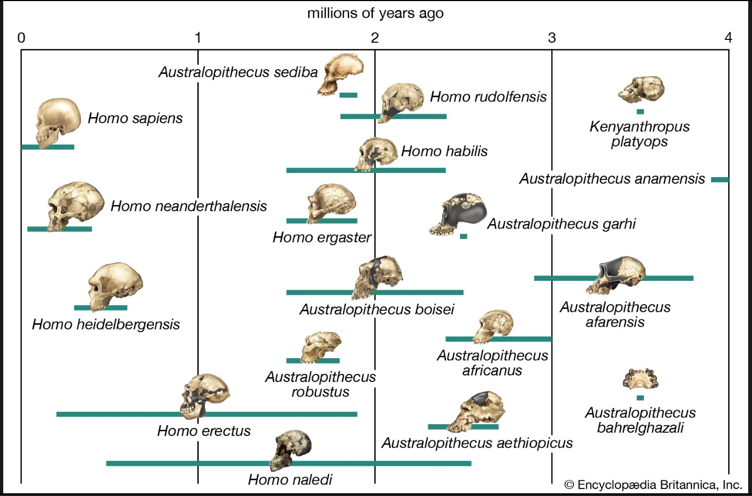 Şunu da belirtmek gerekir ki türümüzün evrimi doğrusal bir çizgi izlememiştir. Hepsi -büyük olasılıkla- Australopithecus’tan evrimleşmiş olsa da, birbirinden yalıtılmış insansı toplulukları milyonlarca yıl içinde farklı alt türlere evrilmiştir. Örneğin bundan 1,8 milyon yıl öncesinin Afrika’sına gidebilsek, hepsi Homo olan Rudolfensis, A. Sediba, Ergaster, Habilis, A. Boisei, A. Robustus, Naledi ve Erectus’un savanayı paylaştıklarını görürdük(2).]