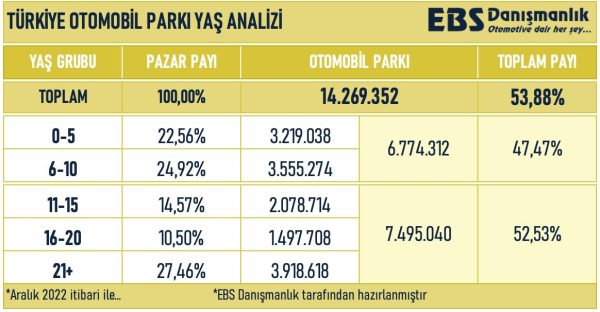 EBS Danışmanlık Genel Müdürü Erol Şahin, mevcut otomobil parkımız ile yollara zor sığdığımızı belirterek şu yorumu yaptı: “Bu kadar araç çok fazla diyenlere hatırlatmakta fayda var, aynı nüfusa sahip oluğumuz ve sürekli bizi kıskandığını düşündüğümüz Almanya yollarında bizim 3 katımızdan fazla yaklaşık 49 milyon otomobil bulunmakta. Ortalama araç parkımızın yaşı 14,5 olurken otomobil parkı yaş ortalamamız 14,1 düzeyine çıktı. Elbette bizim nüfusumuz genç o yüzden rakamlar düşük çıkıyor diyenler içinde belirtmek lazım ki Türkiye’nin nüfusu artık hızla yaşlanmakta. Nüfus artış hızımız 2010 yılında % 0,15 seviyesinde iken 2023 yılında % 0,01 düzeyine geriledi. 2007 yılında ortalama yaşımız 28 iken bugün ise 34,5 oldu. Zaten mevcut ucube ÖTV sistemi ve vergiden vergi alma isteği oldukça işimiz zor görünmekte. Sözün kısası yolumuz uzun ve engebeli...