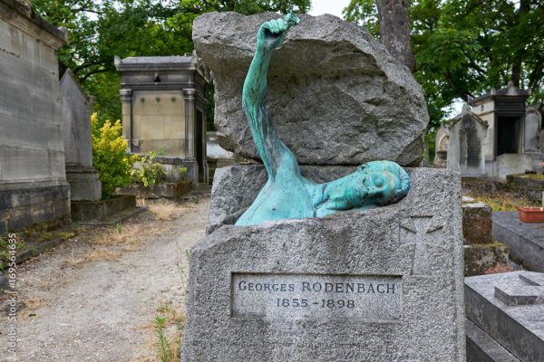 Rodenbach'ın Paris'teki Pere Lachaise Mezarlığı'nda bulunan ve heykeltraş Charlotte Besnard'a ait olan mezarı[/caption]