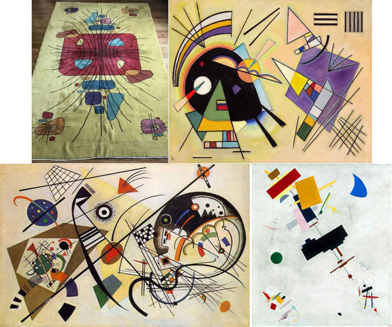 Kandinsky, Klee, Mondrian, Malevich -ve hatta iki tasarımda izlerini gördüğüm Jason Pollock’ın- ortak paydası Soyut Sanat akımı içinde yer almaları, hatta Kandinsky bu akımın kurucusu kabul ediliyor (aslında Hilma af Klint Kandinsky’den önce bu akımın ilk örneklerini vermiş olsa da yaşarken bile az tanınan bir ressam olması ve belki de kadın olması yüzünden bu paye Kandinsky’e sunulmuştur). Mondrian ve Malevich’in adları, kurucuları oldukları Neoplastisizm ve Süprematizm akımlarıyla birlikte anılsa da bunlar da soyut akımda eser üreten sanatçılar. Paul Klee ise Soyut’un dışına taşan bir sanatçı, eserlerinin bir kısmı Soyut Sanat’a dahilken diğerleri her akımın dışında kalır, etiket kabul etmez.