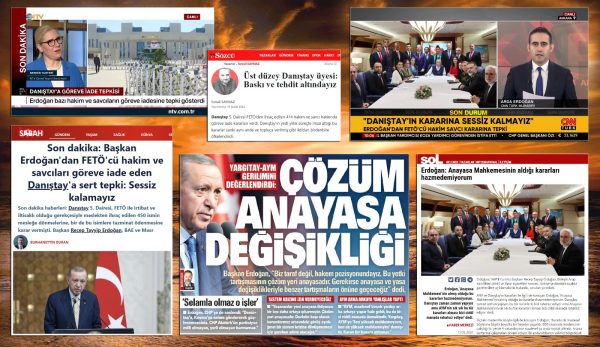 Gazetecilik, her koşulda, her zaman hukuku, adaleti savunmalı. Ama uçaktaki gazeteciler, Erdoğan’ın kendisini AYM ve Danıştay’ın üzerinde görmesine ses etmediler. Dahası Erdoğan’ın bu açıklamasından sonra iktidar medyasında çıkan haber ve yazılarda Danıştay suçlandı sürekli olarak. Hem de Danıştay, bir anda 450 yargıç ve savcıyı göreve iade etmiş gibi aktarıldı. Hatta göreve iade kararlarını savunmak da “FETÖ’cüleri savunmak” ile eşdeğer tutuldu.