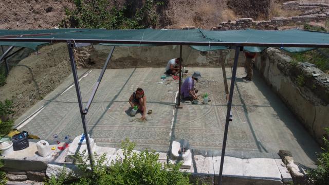 Mozaik zemin döşemelerinin koruma ve onarım çalışmalarını yürüten Ankara Hacı Bayram Veli Üniversitesi Öğretim Üyesi Dr. Murat Cura, bölgenin 2015 yılında yapılan kazıyla keşfedildiğini ve mozaiğin geçici korumaya alındığını anlattı.