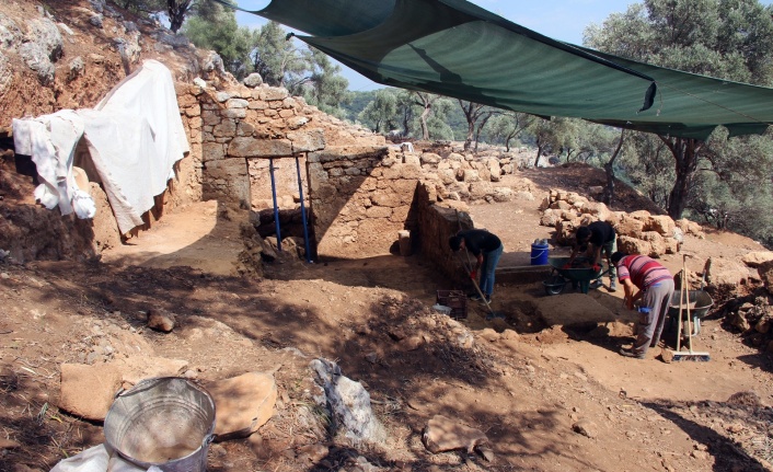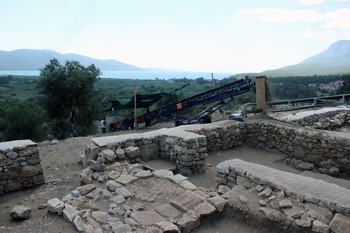 Muğla’nın Karia bölgesinin en eski antik kentlerinden biri olan İdyma antik kentinin girişindeki meclis binası ve tapınak olduğu tahmin edilen alanda çalışmalar yürütülüyor.