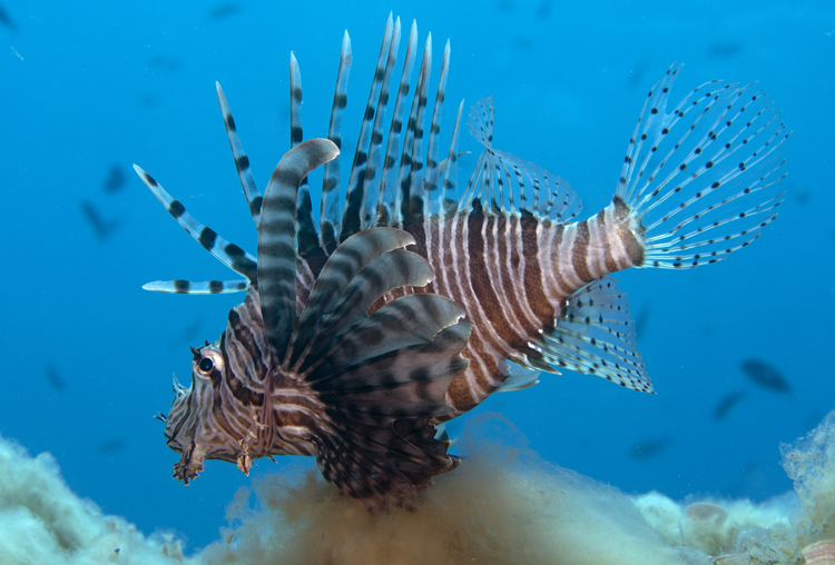Aslan balığı Ege’de fotoğraf tutkunu dalgıçların kadrajına giriyor.