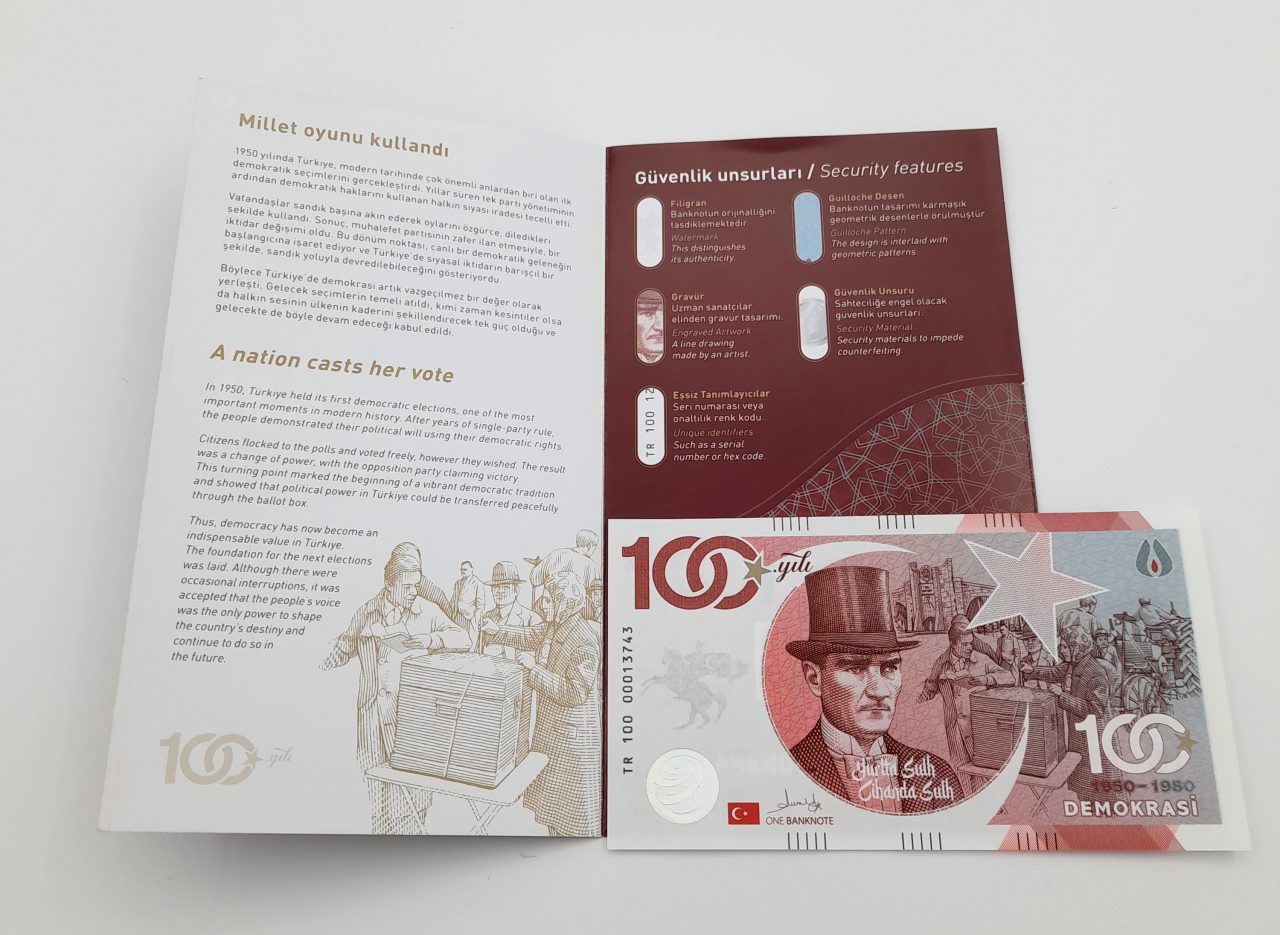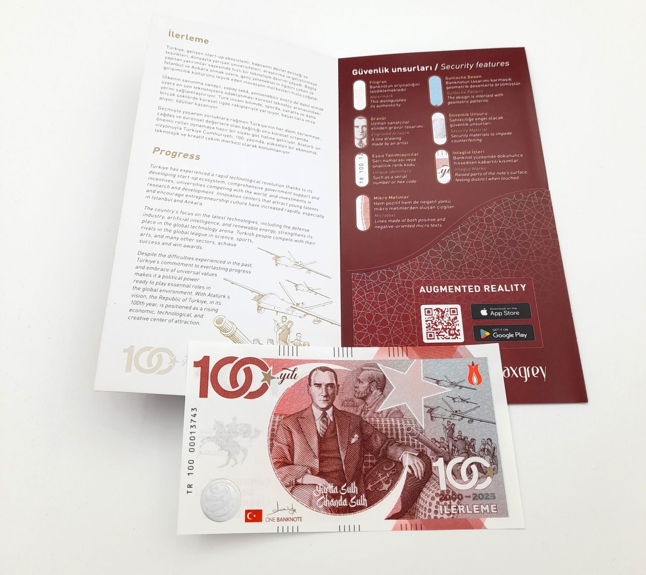 Koleksiyon, tarih severler, nümizmatlar, koleksiyonerler, ile Cumhuriyet’in 100. yılına özel orijinal ve prestijli bir hediye arayanlar için mükemmel bir seçenek olacak şekilde tasarlandı. Sınırlı sayıda basılan banknotların her biri, eşsiz bir seri numarasına sahip. Banknotlar, Avrupa Birliği’nin para basımı için çalıştığı, dünyanın en yüksek kaliteli banknot üretimi yapan darphanelerinden biri olan Royal Joh.Enschedé tarafından basıldı. Gerçek banknotlarda bulunan tüm güvenlik özelliklerine ve kalite seviyesine sahip bu banknotlar, filigran, tifdruk, gravür, gizli UV desenleri ve mor ışıkla aktive olan desenler barındırıyor. Böylece, ele alındığında yeni basılmış gerçek para hissiyatını almak mümkün olabiliyor.