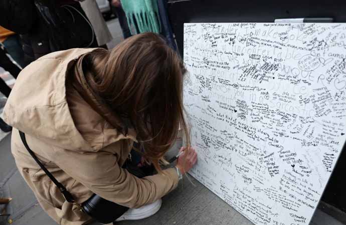 Dizide "Central Perk" olarak adlandırılan kafenin dış çekimlerinde kullanılan mekanın önünde bir araya gelenler, çiçeklerin yanı sıra ufak notlar da yazdı.