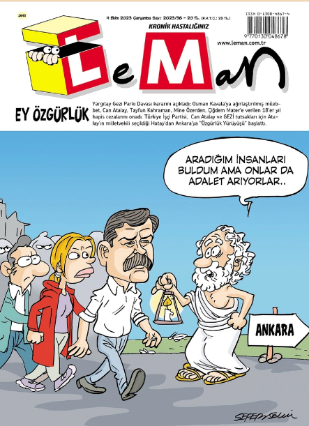 Mizah ve karikatür dergisi LeMan kapağına Özgürlük Yürüyüşü'nü taşıdı.Gezi Parkı Davası'nda Yargıtay kararı açıklanmış ve Osman Kavala'ya ağırlaştırılmış müebbet, Can Atalay, Tayfun Kahraman, Mine Özerden ve...