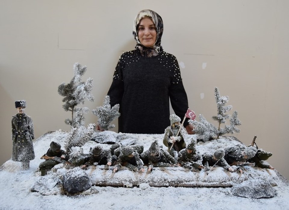Kars’ta Kafkas Üniversitesi Güzel Sanatlar Fakültesi Tekstil ve Moda Tasarımı Bölümü Araştırma Görevlisi Dr. Emine Erdoğan, 1. Dünya Savaşı’nda Osmanlı ordusunun Rus işgali altındaki toprakları kurtarmak için başlattığı Sarıkamış Harekatı’nda yaşananları “minyatür asker” çalışmasıyla canlandırdı. Bir yıl araştırma yaptığı konuyu bir yıl boyunca da el emeğiyle işleyen Erdoğan, Enver Paşa ve bazı subaylar ile asker figürlerinin yer aldığı eserini, Kars’ın Sarıkamış ilçesinde 6-8 Ocak’ta düzenlenecek harekatın 108. yılında anma etkinliklerinde sergileyecek.