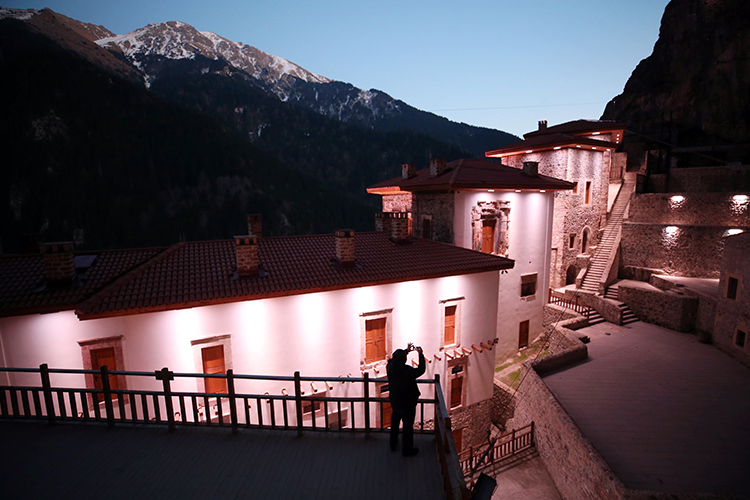 Türkiye’nin önemli inanç turizmi rotalarından Sümela Manastırı, yapılan ışıklandırma çalışmasıyla dik yamaçtaki ışıltılı görüntüsüyle geceleri de dikkati çekecek.