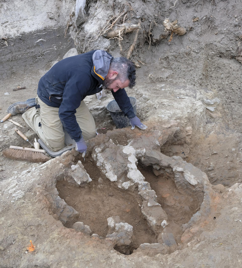 Arkeologlar, Romalıların eski bina yapımında sıklıkla kullanılan metamorfik bir kaya olan şist levhalarını çıkardıkları, 2 metreden daha derin bir Roma dönemi ocak alanı keşfettiler.