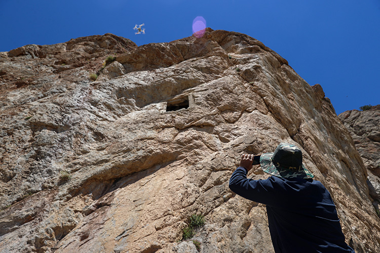 Kale kalıntısının güney batısında "dev ev" olarak adlandırılan bir mekan tespit ettiklerini anlatan Çavuşoğlu, Bir diğer önemli olarak gördüğümüz şey kaya mezarı. Çok dik olduğu için çıkamadığımız oda mezarın iç bölümünü dron ile görüntülemeye çalıştık Urartu'nun klasik özelliklerini taşıyor” dedi.