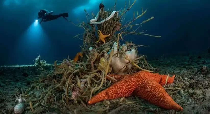 Fotoğrafçı ve biyolog Laurent Ballesta da “Under Antarctic ice” eserinde Antarktika’nın derinliklerinde farklı yaşam formlarını beraber görüntüledi.