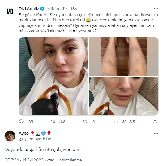 Dizi setlerinin geç saatlere kadar sürmesi, repliklerin ezberlenmesi de paylaşıma konu oldu.