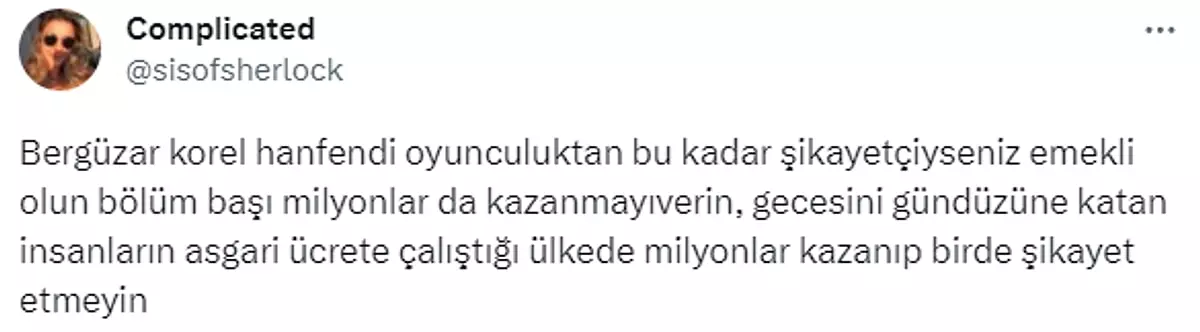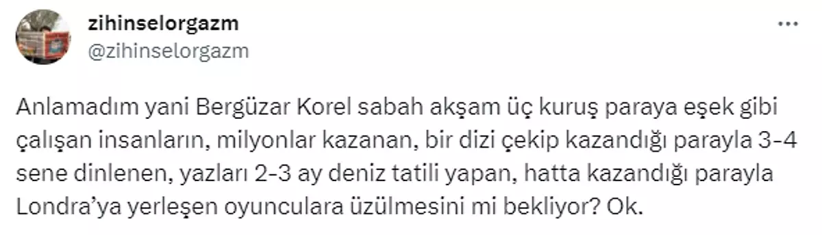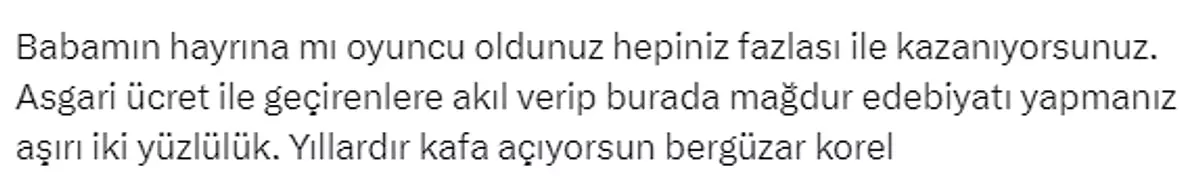 Korel, oyuncuların hayatlarına dair eleştirilerde bulunanlara karşı sitemde bulundu.