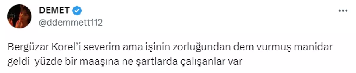 Ünlü oyuncu Bergüzar Korel, uzun bir sürenin ardından setlere geri döndü. Sabah 06.00'da setten dönen Korel, sosyal medya hesabından yaptığı paylaşımlarla sosyal medyada gündem oldu. Korel, oyuncuların hayatlarına dair eleştirilerde...