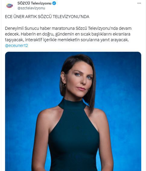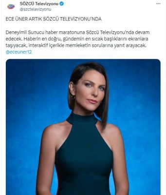 Sözcü TV'nin X isimli sosyal medya platformundaki hesabından Ece Üner'e ilişkin açıklama yapıldı.