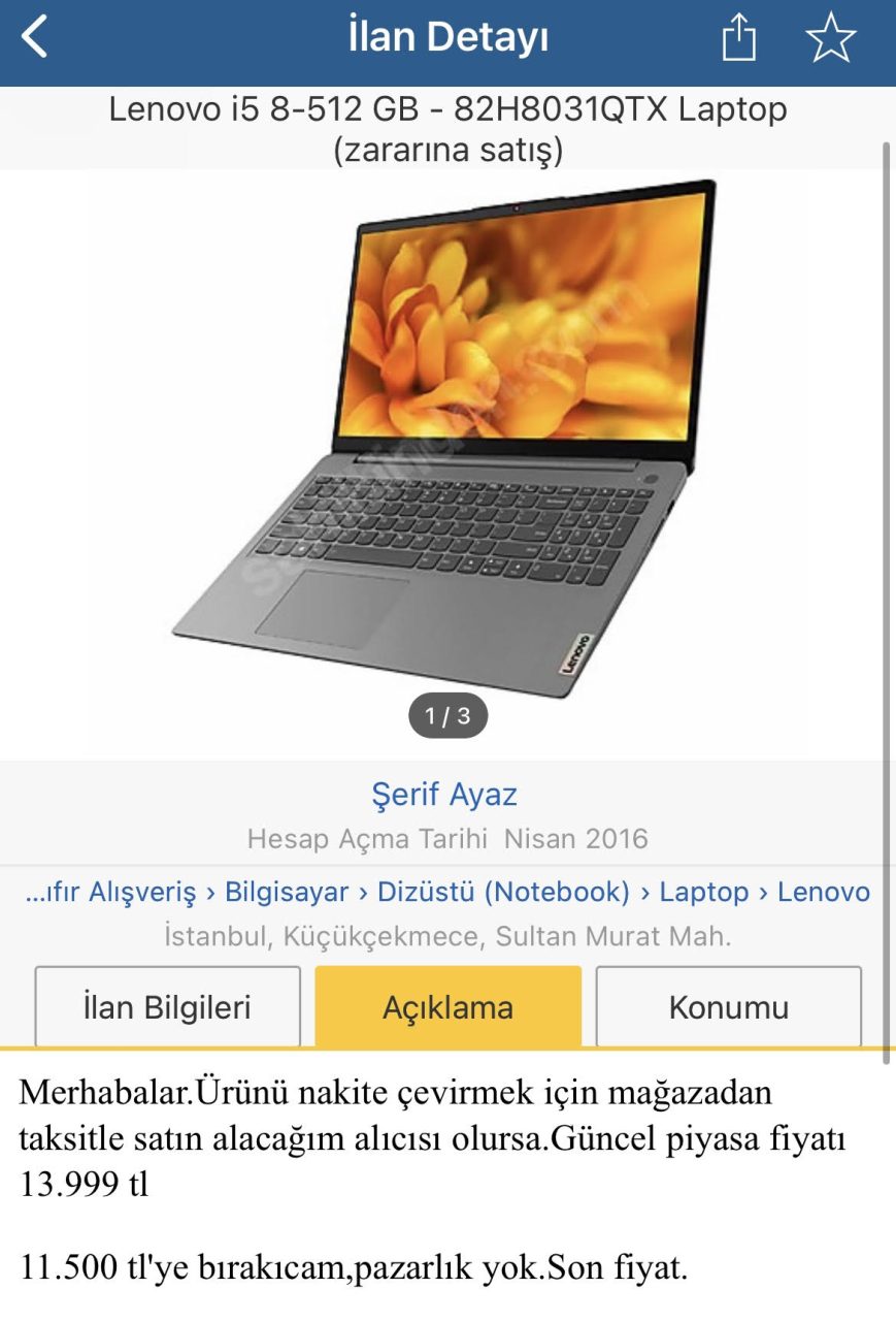 "Ürünü nakite çevirmek için mağazadan taksitle alacağım. Alıcısı olursa Güncel piyasa değeri 13.999 TL. 11.500 TL'ye bırakacağım."