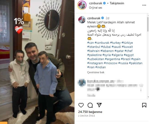 Ünlü şef Instagram hesabından yaptığı paylaşımda, Latif'le videosunu yayınlayarak, "Melek Latif kardeşim, Allah rahmet eylesin" ifadelerini kullandı.