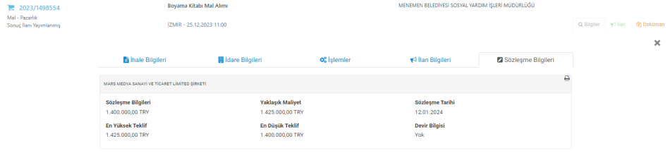 Kamu İhale Bülteni'nde yer alan bilgilere göre, AKP yönetimindeki Menemen Belediyesi, 25 Aralık 2023 tarihinde Boyama Kitabı Mal Alımı başlığıyla ihale düzenledi.
