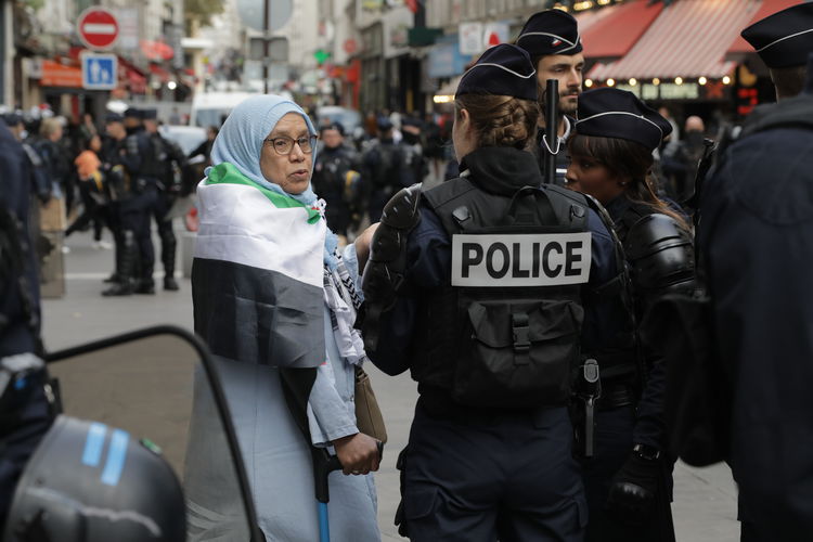 Polis, göstericilerin etrafında çember oluşturarak bulundukları noktadan ayrılmalarına izin vermedi. Ellerinde "Soykırımı durdurun" ve "Filistin özgür kalacak" yazılı pankartlar taşıyan göstericiler, "Katil İsrail, suç ortağı (Fransa Cumhurbaşkanı) Macron", "Filistin galip gelecek", "Soykırımı durdurun" ve "Gazze hepimiz seninleyiz" sloganları attı.
