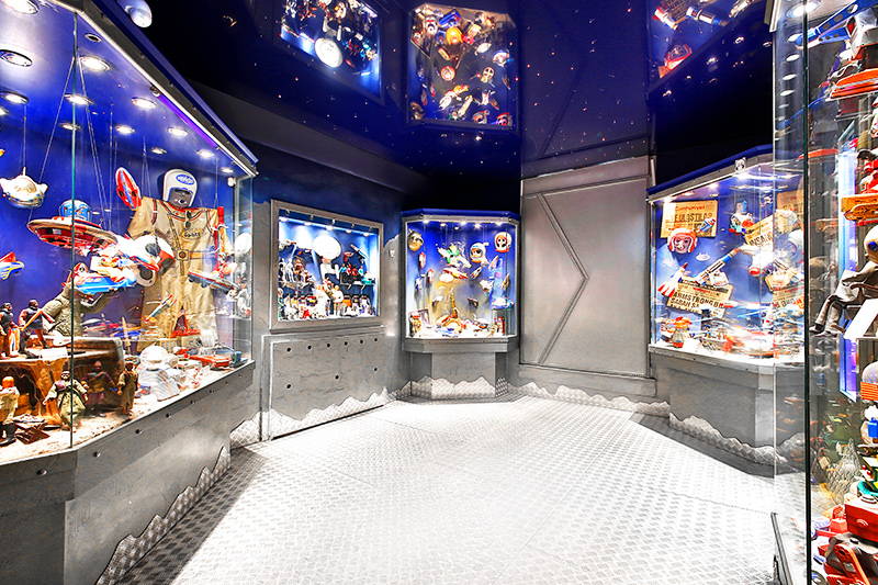 Bir diğer örneği de müzenin etkileyici tasarımıyla dikkat çeken uzay odasından vermek istiyorum. Uzay odasında, uzay oyuncaklarının ilk defa 1920’lerde Amerika tarafından yapıldığı göze çarpıyor. Müzenin kurucusu Sunay Akın’ın da deyişiyle Amerikalılar 1920’li yıllarda çocuklarının hayallerine uzayı yerleştirdiler ve uzay gemileriyle oynayan bu çocuklar büyüdüklerinde NASA’daydılar.