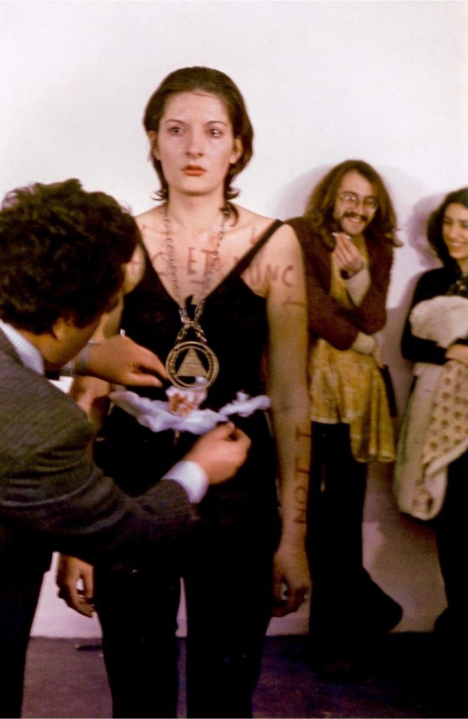 Benzer bir deneyim ise dünya 1979 yılında performans sanatçısı Marina Abramovic’in hazırladığı “Rythm 0” isimli gösteride yaşadı. Abramovic’in gösterisi seçkin davetlilerin karşısında hareketsiz durmaktı. Gösterinin başında davetliler kadının karşısında komiklik yaparak onu güldürmeye, saçıyla oynayıp dikkatini dağıtmaya çalışıyorlardı. Ancak saatler ilerleyince işin rengi değişti. Kadının tüm yapılanlara karşı tepkisiz kalması kimilerini rahatsız etmiş olmalı ki davetli erkeklerden birinin Abramovic’e tokat atmasıyla gösteri bambaşka bir boyuta evrildi. Davetliler kontrolünü yitirmiş şekilde kadına utanç verici davranışlar göstermeye başladı. Kimi vuruyor, kimi elbiselerini yırtıyor, kimi de bıçakla vücuduna çizikler atıyordu. En son davetlilerden biri kadına tecavüz etmeye yeltenince bir başka kadının içindeki iyiliğin cılız sesi duyuldu ve ne yaptıklarının farkına varan üç beş davetli sayesinde gözünden yaşlar gelen Marina Abramovic koruma çemberine alındı. Bu durum topluluk içinde birbirinden güç alan insanların içlerindeki kötülüğü ne kadar kolay ortaya çıkartabileceklerini, ancak bu durumdan rahatsız olan insanların aynı dayanışma ve cesareti göstermekte zayıf kaldığının canlı bir örneğiydi.