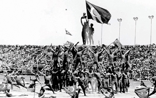“Gürbüz ve Yavuz Evlatlar” kitabında Geç Osmanlı ile başlayıp tek parti iktidarının sonuna kadar erken cumhuriyet tarihi boyunca yönetici sınıfın spora olan bakış açısını oldukça detaylı bir şekilde ele alan Akın ise -her ne kadar Franco’ya atfedilse de- Portekizli diktatör Salazar’ın 3F formülünü (fiesta, fado, futbol) anımsatıp bugün turizmle birlikte eğlence-boş zaman sektörünün amiral gemisi sayılan sporun tarih boyunca gelişimini okuyucuya kısaca sunuyor. Özellikle 19.yüzyıl itibariyle Avrupa orijinli olarak toprağı hükümranlığın esası kabul eden zihniyetten vazgeçilip nüfusa dayalı devlet anlayışına geçildiğine dikkat çeken Akın, beden terbiyesi ve sporun halk sağlığı politikalarına eklenmesinin Victoria İngilteresi dönemine denk geldiğini hatırlatıyor. Kitabının asıl bölümünü yıkılan bir imparatorluktan yeni kurulan Cumhuriyet’e sporun -özellikle yönetici elitler açısından- toplumdaki önemine dair örneklere ayıran Akın’a göre Osmanlı’da ilk spor emarelerine 19.yy’ın ikinci yarısından sonra askerî okullarda rastlayabiliyoruz. İktisadi ve sosyal kalkınma çalışmaları için gerekli olan sağlam, becerikli ve disiplinli insan gücününü yetiştirilmeye çalışılan bu dönemde zamanla bazı sivil okulların da jimnastik derslerini riyazat-ı bedeniye adı altında programlarına dahil ettikleri; yüzyılın sonuna doğru aşiret mekteplerinde de “ilkel çocuklara zaman ve mekan bağlamında disiplin duygusunu aşılamak ve onları vücut sağlığına özen göstermek anlamında medeniyetle tanıştırmak” için ayak talimi dersleri verildiğine değiniliyor. II.Abdülhamit döneminde de zamanın ruhuna uygun olarak beden egzersizleri bireysel ve toplumsal sağlık ve maddi refahla ilişkilendiriliyor ve ilk spor kulübü olan Beşiktaş Osmanlı Jimnastik Kulübü’nün nüveleri teşkil ediliyor. Sporla ilgili kulüplerin, birliklerin sayısı artmaya, terbiye-i bedeniye dersleri ülke sathına yayılmaya başlıyor. I.Dünya Savaşı’nın ayak seslerinin duyulduğu zamanlarda ise kültür-fizik hareketleri giderek daha militarize bir amaca yöneliyor.