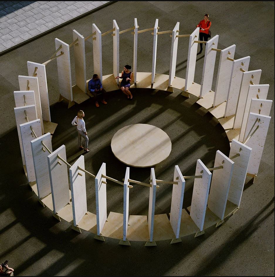 Festival komitesinin komisyonu ile üretilen Henge isimli kentsel tasarım birimi de Canary Wharf da konumlanıyor. Bu eser, Krallık ve İrlanda topraklarında yer alan binlerce antik taştan ilham alan daire şeklinde bir buluşma noktası. Oldukça ikonik olan bu alanda, izleyiciler soluklanacak, otururken tasarımı deneyimleyecek; Henge belki de festival boyunca insanların buluşma noktası haline dönüşecek.